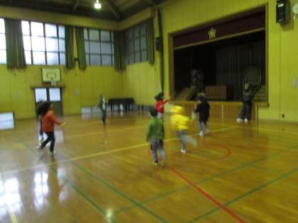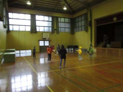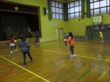 仲良くバスケットボールをすることになりました。指を怪我しないように…。