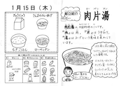 肉片湯…ローペンタンと読みます。具だくさんの中国料理です。どんな味だったでしょうね。
