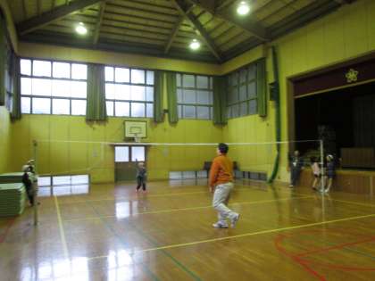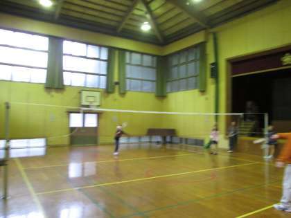 総合運動部はバドミントンに挑戦。意外とサーブが難しかったり空振りしてみたり…