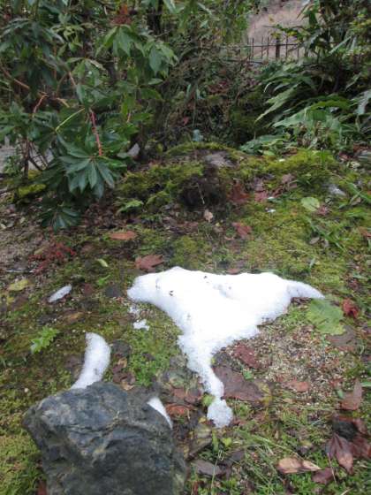 道路横の雪は,路面凍結の原因にもなっています。要注意です。