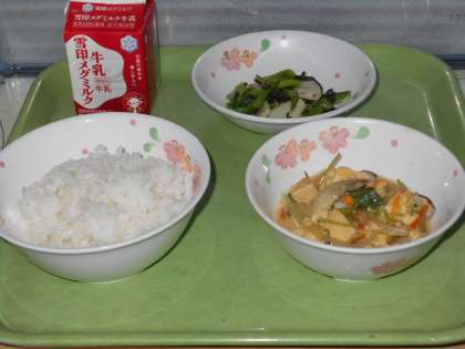 今日は和食です。見た目は少ない感じがしますが,食べるとおなかいっぱいになります。