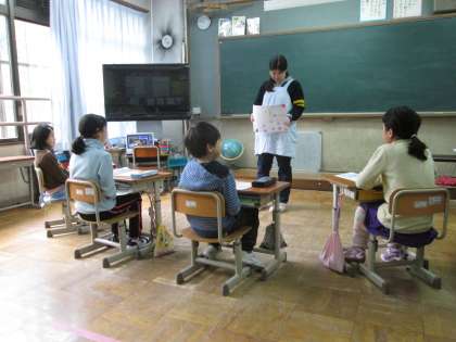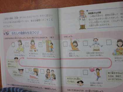 3年生の保健の授業です。『自分の健康な生活』について考えます。紙芝居もありました。