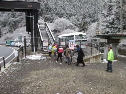 石段や階段も,一部凍っています。下校の時にも気を付けましょう。