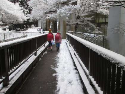 つぶやきながら元気に登校しました。橋の上はつるつるです。転倒防止なら,新雪の方がましかもしれませんね。