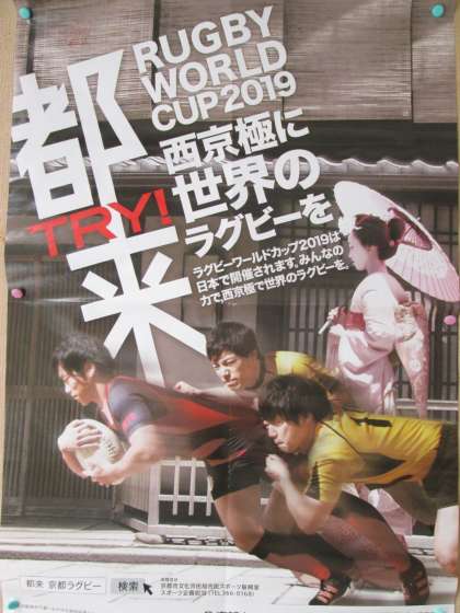 教頭先生が校内のポスターを張り替えてくれました。鞍馬っ子は気付くかな?(上から,法隆寺の放水訓練・ワールドカップラグビー・流氷です。)