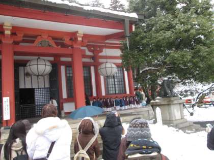 掛け声が雪の鞍馬山に響きます。