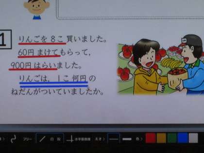りんごは,1こ何円のねだんがついていたのでしょう…。