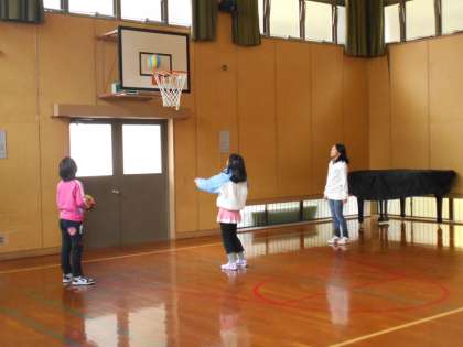 フリースローは正面だけでなく,いろいろな場所から投げて楽しそうです。