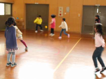 ドッジボール組とバスケットボール組に分かれました。