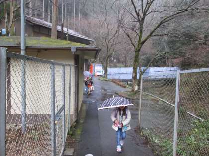 雨の中の登校