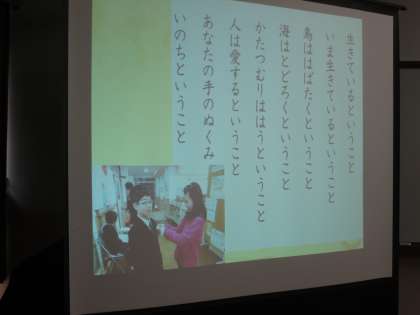 テーマは『卒業を前にした心』です。詩の朗読と自分で作った詩を紹介してくれました。