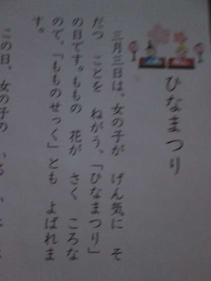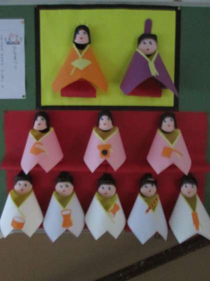 階段を上がると『おひなさま』がおられました。先生方の掲示物のアイデアですね。