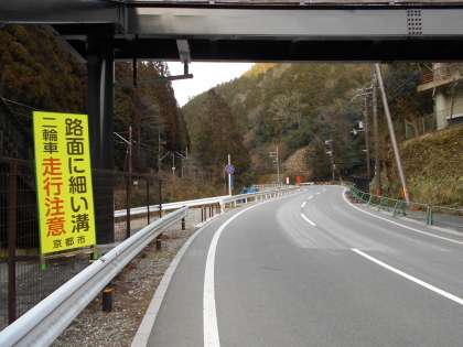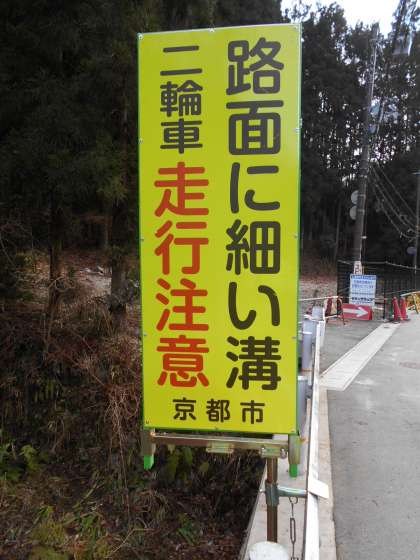 看板には注意が書かれています。車両の方は,気をつけて走行してください。