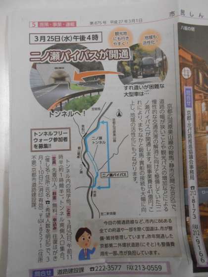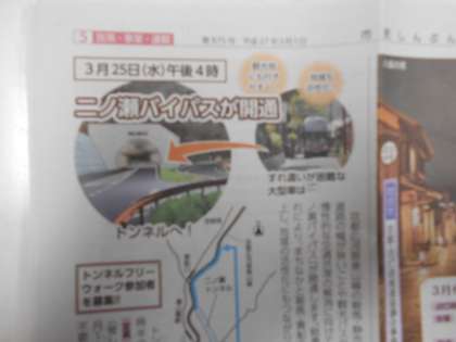 市民新聞に〖二ノ瀬バイパス〗の記事が掲載されていました。