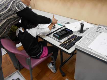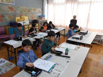 今年度最後の書道教室です。座席の位置を少し変えてみました。
