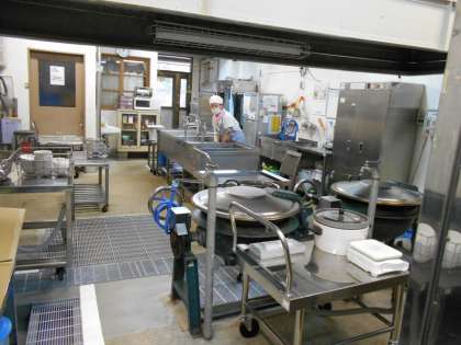 調理員さんが作業されている様子です。準備から後片付けまで,一人で作業されています。