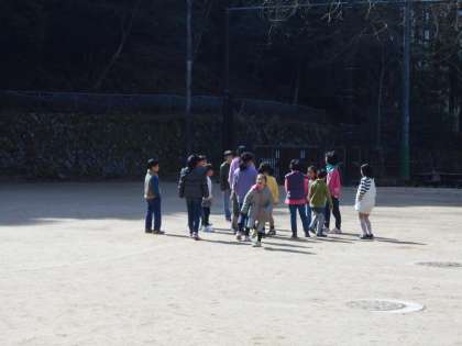 リレー遊びを楽しんでいます。みんな走るのが好きです。