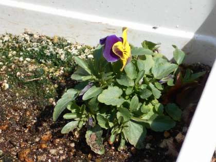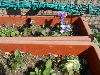 校庭の草花が成長しています。花びらが春を感じさせます。