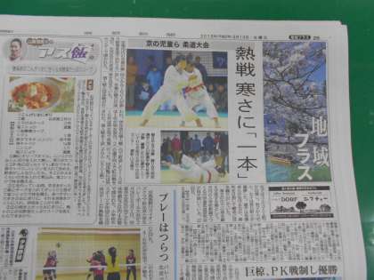 今朝の京都新聞に,先日の耐寒柔道大会の記事が掲載されていました。本校児童の名前も載っており,朝から教頭先生・教職員も感激いっぱいでした。