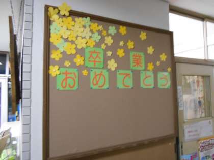 今週金曜日は卒業式です。保健室掲示板も『卒業おめでとう』に変わっています。