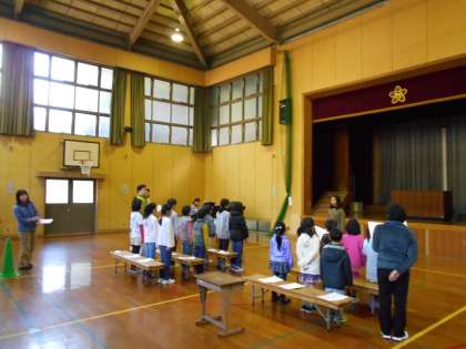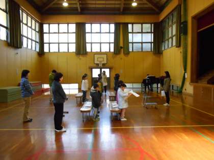 1年〜5年生が加わっての練習が始まりました。歌声が体育館に響きます。