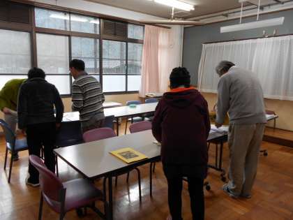 全教職員での製本作業の様子です。
