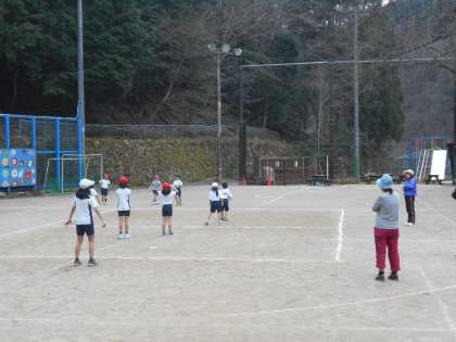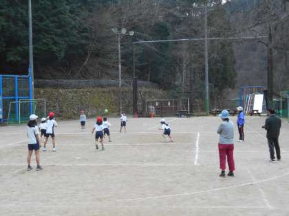 6年生が1年生とドッジボールをしています。明後日が卒業式,『お別れのドッジボール』に見えましたが,とても楽しそうでした。
