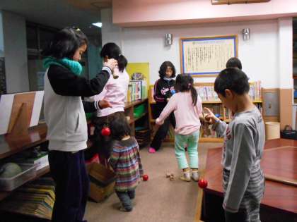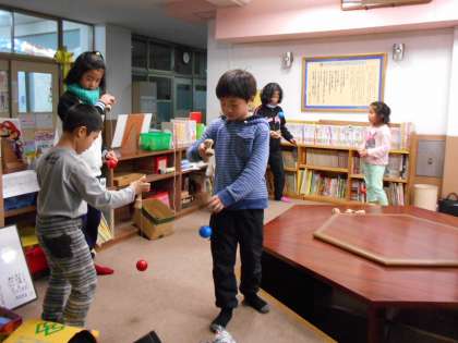 今日は本年度の最終日です。帰宅する前,子どもたちはけん玉で盛り上がっていました。本当に楽しそうな鞍馬の子どもたちです。