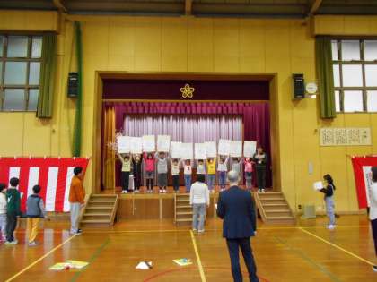 入学式練習の後,明後日に迫った【二ノ瀬トンネル開通式典】の練習もしました。