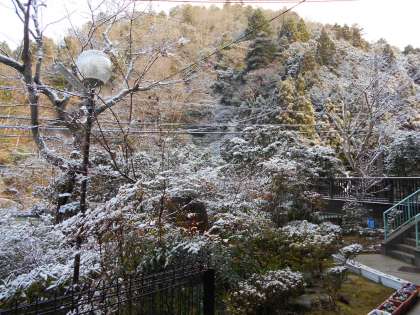 またまた‘冬’に逆戻りの朝です。学校周辺は雪化粧です。