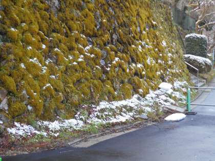 シャガや苔に雪が積もりました。