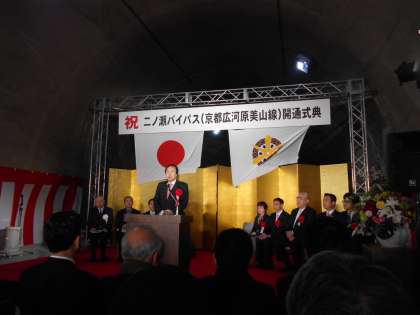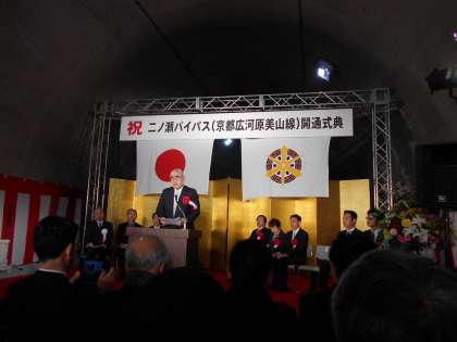 門川京都市長様・中村京都市会議長様・梁瀬自治振興会長のご挨拶が,厳粛な雰囲気の中,トンネルで挙行されました。