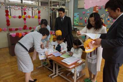 最後にもう一度体育館に戻り,保護者の方と記念撮影をしました。