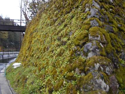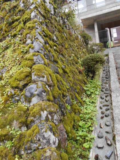学校をを守るような,鞍馬っ子を育むような石垣,その石垣に長年の『苔』がびっしりと張り付いているのです。今日の雨を喜んでいるのかもしれませんね。