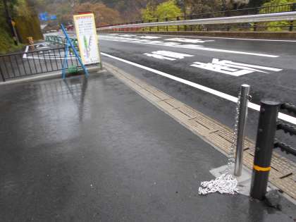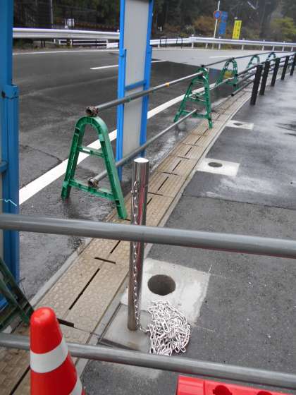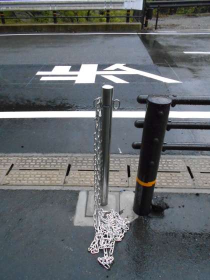 学校前のスペースに,鎖が取り付けられました。工事や関係の方々が利用されるそうです。