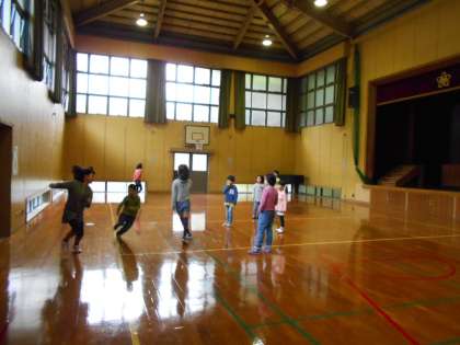 今朝は体育館で遊んでいます。現在の気温は9度です。