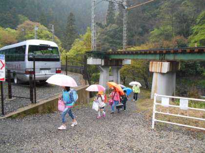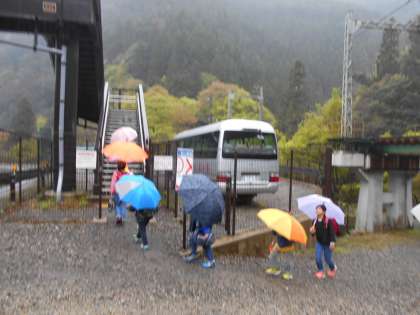 傘をさしての登校です。