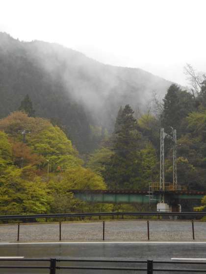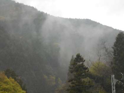 上空の霧,今朝は動きが速いようです。どんどんと流れています。