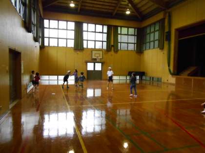 中間休み,体育館で遊ぶ鞍馬っ子。滑らないように!