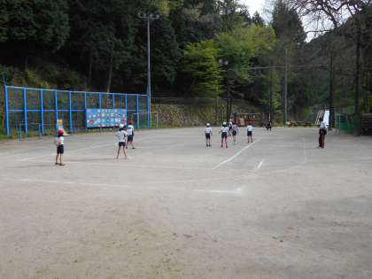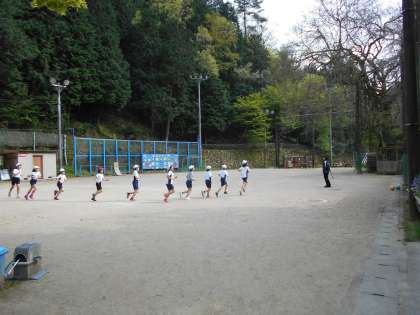 ジョギング・ドッジボールを楽しんでいます。歓声が聞こえます。