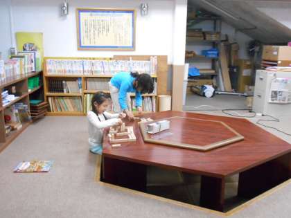 総合学習室で遊んでいます。鼻歌(替え歌)が聞こえました。
