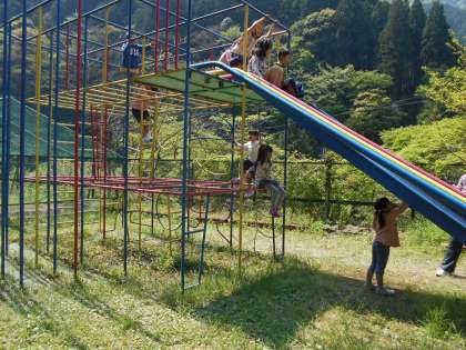 食後の運動は,総合遊具が人気のようです。