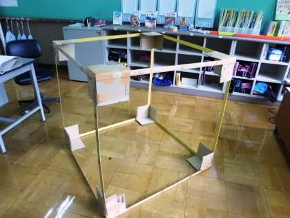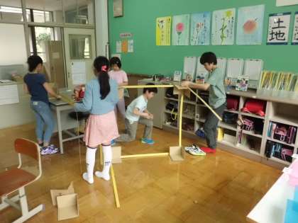 1mのものさしを使って,1立方メートルの大きさを体感しました。