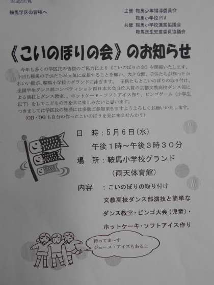 絶好のお天気となりました。1時から始まる『こいのぼりの会』,諸準備開始です。