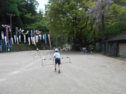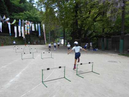 ハードルを飛びながら見ています。