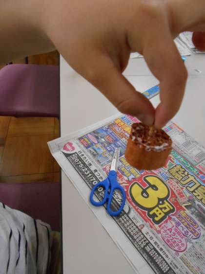 まずは『ダンボールごま』に挑戦。