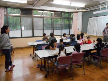 雨が降り続いています。台風の進路が気がかりですが,児童は堀先生の声に耳を傾けています。