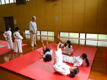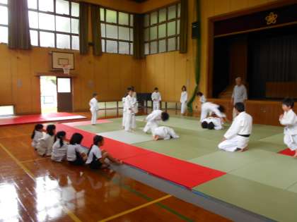 上級生は『横受け身』『前受け身』など,充分な準備運動を流れるようにできます。下級生は一つ一つ体で覚えていきます。