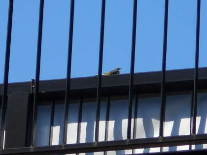 歩道橋の上で,さかんに鳴く小鳥を見つけました。