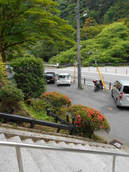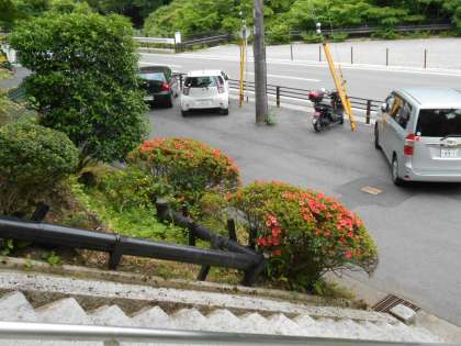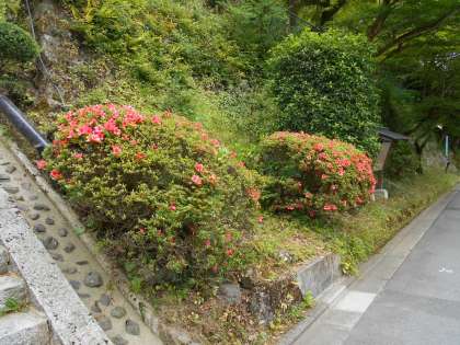 石段のつつじですが,この陽気でつぼみが一気に開いてきました。